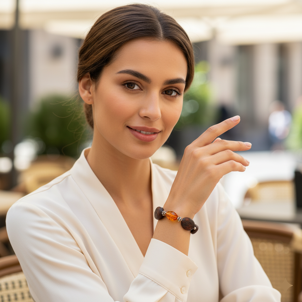 Prezentujemy wyjątkowy bransoletka z bursztynem , wykonany ręcznie w naszej krakowskiej pracowni Amber Figaro. Ten naturalny bursztyn bałtycki (Baltic Amber) zachwyca swoją unikalną strukturą i ciepłym blaskiem, stanowiąc idealny prezent dla niej na każdą okazję.