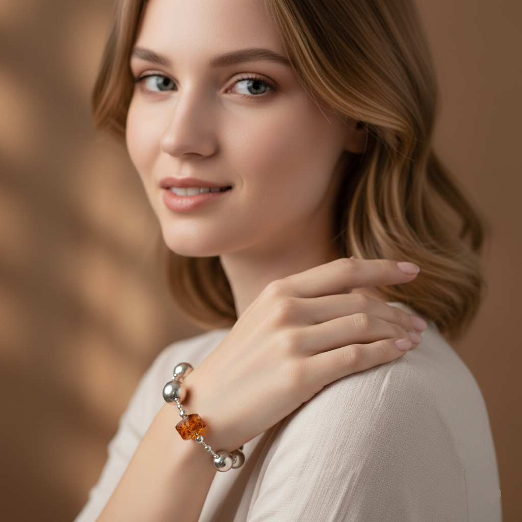 Bransoletka z koniakowym bursztynem - Unikatowa Biżuteria z Bursztynem Bałtyckim