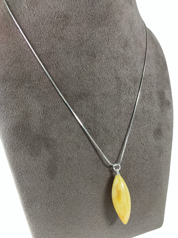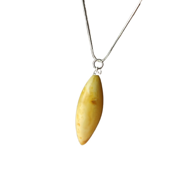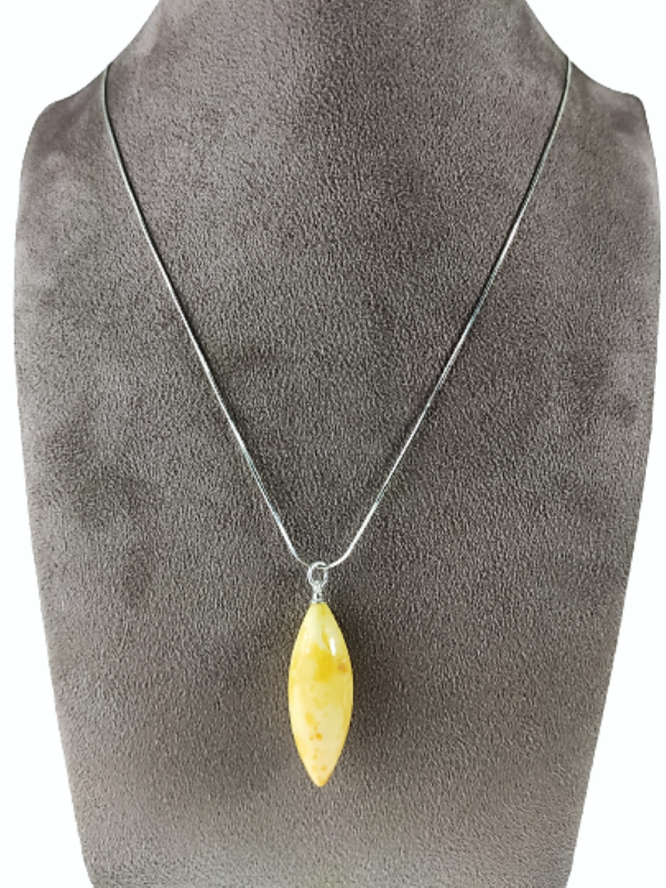 Ponadczasowe połączenie srebra i bursztynu. Przepiękna mleczna zawieszka na srebrnym łańcuszku doskonale uzupełni każdą stylizację i doda jej lekkości oraz elegancji. Świetnie sprawdzi się zarówno jako dodatek na co dzień jak i na wieczorne wyjście.